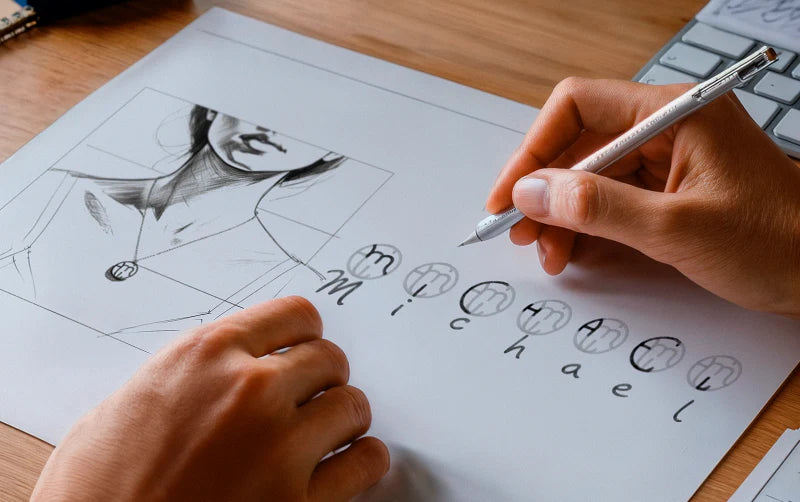Une fois que vous avez passé votre commande, nous vous attribuons un artiste dédié qui créera le design de votre collier personnalisé selon vos souhaits individuels.